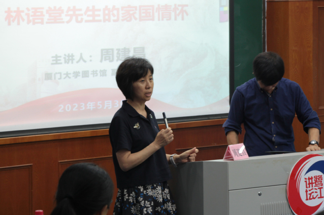 最后,周郁蓓院长做了总结发言,称林语堂的爱国情怀是一种理性的情怀、有境界的情怀。周院长还提到,林语堂的家乡漳州平和,而“平和”这两字就恰恰总结了他家国情怀的本质,并再次感谢周建昌副研究馆员带来的的精彩讲座。