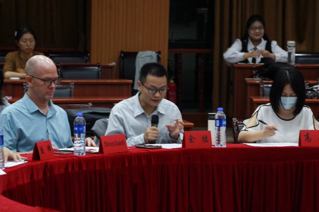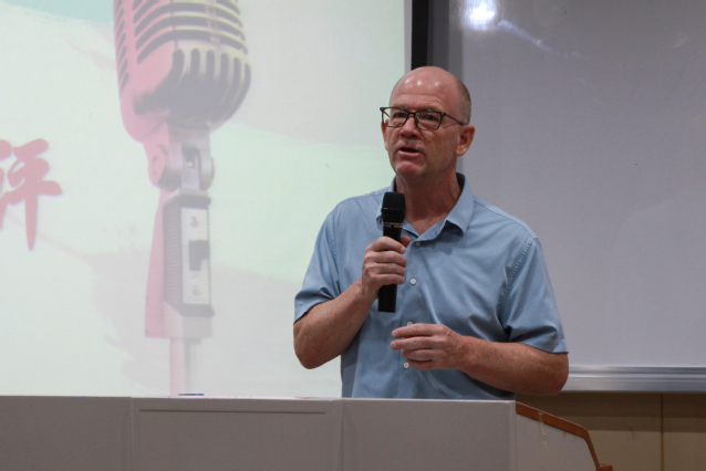 评委点评环节,外教Steven Champion Gauntt首先对选手们当晚的表现给予了充分认可。他表示要想真正地提高演讲的能力,就必须站到台上去做演讲。对于演讲时要不要有严格的框架结构问题,他表示在有备部分演讲,选手可以不必拘泥于课堂上统一化的结构和形式,可以将模式、模版扔掉,用自己个人的、有创造性的形式来赢得观众的认可。但是到了即兴演讲部分,因为准备时间有限,演讲者需要有一个有效应对的模式即框架,演讲者需要在开头就表明自己的立场(thesis statement),然后用2-3个例子(论点)来展开和支撑立场,最后要有个明确的结尾(concluding notes)。