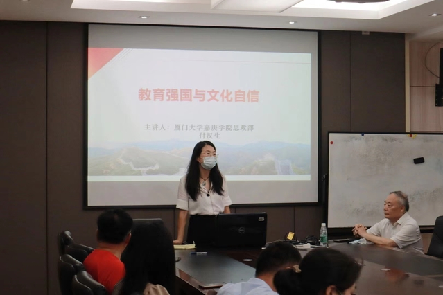 为进一步推进学习贯彻习近平新时代中国特色社会主义思想主题教育,2023年6月8日,金年会jinnianhuicom党总支邀请思政部主任付汉生教授来金年会给全院师生党员作专题报告。党总支书记陈立珍在主持会议时介绍说,付老师的本次主题报告谈的是教育强国和文化自信,是依据我们学院师生的专业特点而特地“量身定制”。各位师生党员必定能通过此次讲座加深对教育强国和文化自信的认识,加深对主题教育的理解。