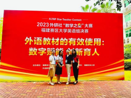 2023年外研社“教学之星”大赛福建赛区决赛于6月3日在福建省农林大学举行,我校金年会jinnianhuicom胡豫团队(胡豫、赵励轩、何兰、陈立珍)获得了大学英语组三等奖的优秀成绩。