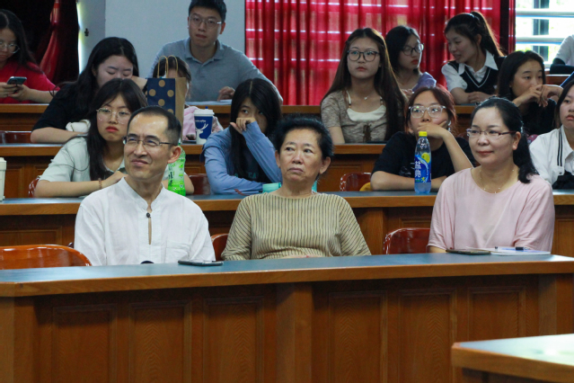 在林秋辉先生的讲座中,师生们了解到林语堂先生是从平和山乡走向世界的文学大师,是中西文化交流的使者。林语堂在旅居国外三十年间,出版了三十多部英文版的作品,向世界解说中国,向祖国表达赤诚。他是第一位以英文书写扬名海外的中国作家,也是集语言学家、哲学家、文学家于一身的著名学者。他的《吾国与吾民》、《生活的艺术》、《浮生六记》、《京华烟云》、《风声鹤唳》、《老子的智慧》和《武则天传》等英文原版著作对中西文化交流做出了巨大贡献。他的长篇小说《京华烟云》(Moment in Peking)使他五次获诺贝尔文学奖提名。林语堂对自己的评价是“两脚跨东西文化,一心评宇宙文章”。