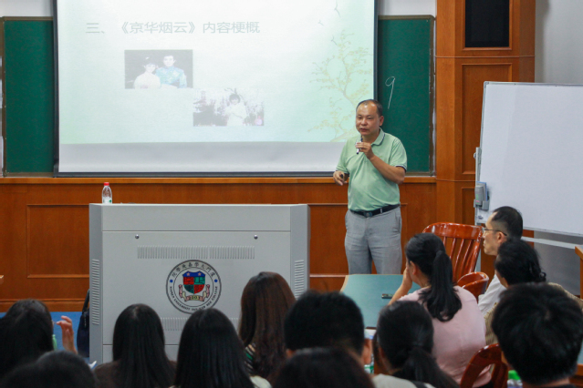 9月20日下午,公1 #208教室座无虚席。金年会jinnianhuicom的师生们终于迎来了翘首以盼的第一个校庆系列讲座:《京华烟云》创作艺术漫谈。主讲人是平和林语堂文学馆馆长林秋辉先生,他还是福建作家协会会员,平和林语堂研究会副会长,金年会jinnianhuicom林语堂文学馆实习基地负责人。林秋辉先生任平和林语堂文学馆馆长多年,又是林语堂的同乡,对林语堂的生平了如指掌,对林语堂文学挚爱崇拜,是研究林语堂一生的活字典。