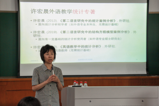 2023年9月22日中午,北京语言大学许宏晨教授为金年会jinnianhuicom师生带来了一场题为“应用语言学量化研究方法—以问卷调查为例”的讲座。首先周郁蓓院长对许教授的到来表示由衷的欢迎。