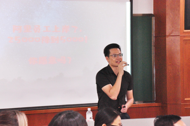 随后,洪总用生动的案例为我们形象地分析如何在发展过程中做到打造自己以及逐步达成目标。他用各式各样的企业家案例论述,我们应该有逐步规划,才能够慢慢接近原本遥不可及到目标。除了正向案例的分享之外,洪总就如何度过职业危机、如何重获信任等逆境也提出了一系列建议。他认为无论是哪一种情况都应该最看重人的主观感受,并坦言人都是需要被重视、肯定的,由此阐释了尊重与精神价值在职场发展过程中的重要性。
