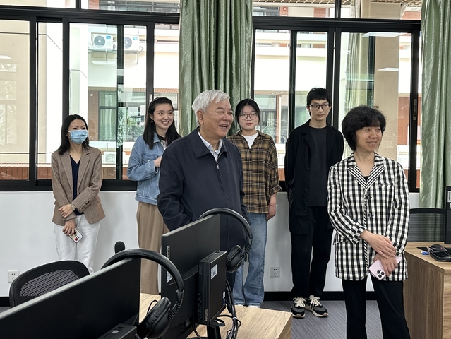 席间,王院长还与师生代表们进行了亲切交流,并就实训室现阶段的使用情况、学生实践能力培养、师资力量培养等方面展开讨论。他希望英语学院的教师、学生要能充分利用实验室的学习资源,最大限度地提高专业技能和竞争力。