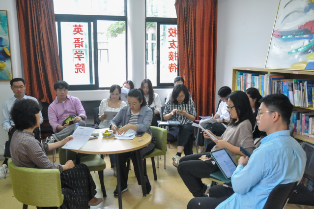 文学与文化教研室在主1跨文化交流中心开展阅读研讨会。本次研讨由周郁蓓院长主持,教研室十几位专任教师参加。