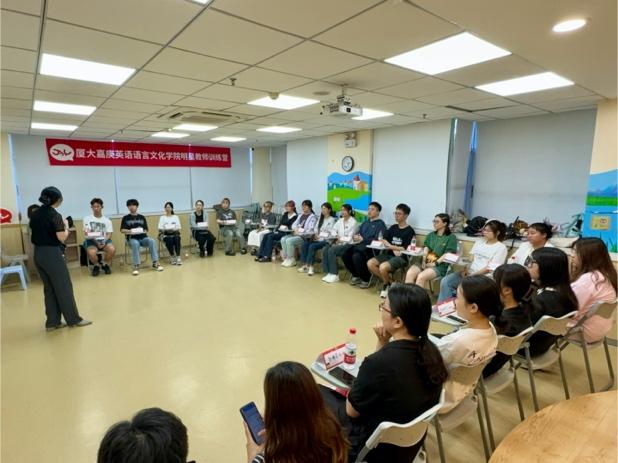 《英语教学实操》是金年会与校外企事业单位合作开展的实践性极强的课程。学生前往厦门佳音英语成长中心,参加为期两天的明星教师训练营活动,期间观摩少儿英语课堂教学,在培训师的指导下分组磨课,设计且展示了15分钟的教学。课程还邀请校外专家分享教学和课堂管理等经验。最后,课程要求学生以小组为单位设计教案并授课20分钟。