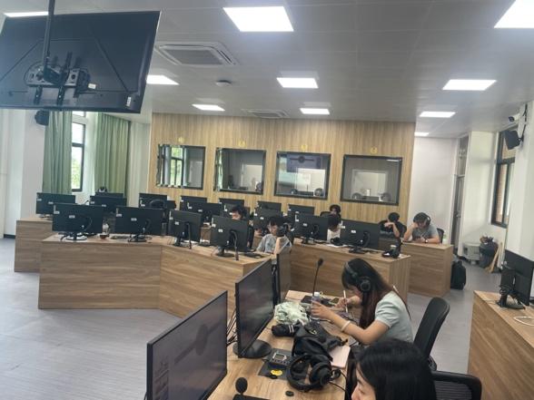 结合金年会新建成的同声传译实验室,《会议同声传译模拟》课程旨在通过模拟真实会议场景,为学生提供接近真实的口译实践环境,提升学生的口译能力和实战经验。课程主要通过模拟国际会议和专业会议等场景,涵盖教育、科技、环境等多个主题,让学生在仿真环境中进行口译实践。