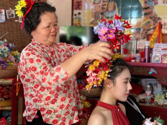 《簪花围”非遗调研--中西花卉文化探究》课程则聚焦于国家级非物质文化遗产“簪花围”的独特魅力。通过实地调研和搜集资料,学生挖掘地区文化,探究如何使“簪花围”从爆红走向长红。课程不仅丰富了学生的文化知识,还培养了他们的实践能力和用英语讲好中国故事的能力。