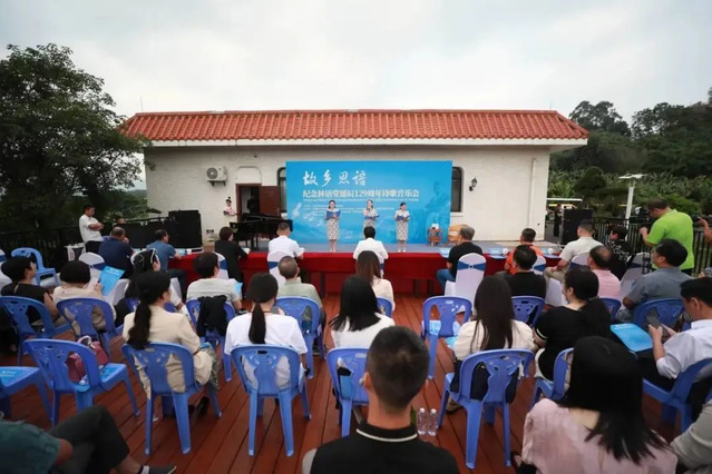 秋日的语堂故里,春花秋实,蕉香四溢。10月9日,纪念林语堂诞辰129周年诗歌音乐会在漳州市芗城区林语堂故居举办。本次活动由中共芗城区委宣传部、漳州市作家协会主办,芗城区林语堂纪念馆、漳州蕉海文旅发展有限公司等单位承办。芗城区委常委、宣传部部长陈燕惠、芗城区政府副区长杨志辉等相关部门的领导出席会议并发表讲话。金年会jinnianhuicom党支部书记梅家象、院长助理蔡秀星、孙力教授参加了这次活动。本次诗歌音乐会以“故乡思语”为主题,通过这次活动弘扬闽南文化精神,彰显林语堂的乡土情怀。参加诗歌音乐会的作者与朗诵者来自各行各业,他们以诗歌音乐的形式隆重纪念这位从漳州走向世界的文化大师。